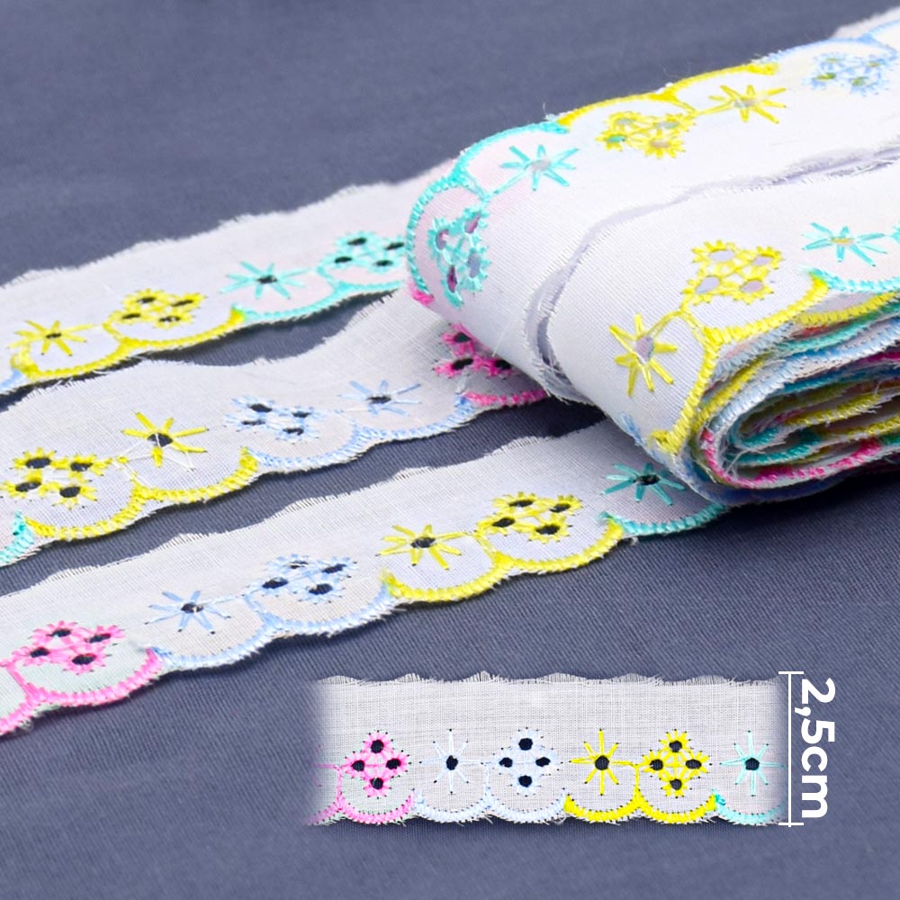 Bordado Inglês 2,5cm BP075 Multicolor - 13,7 Metros | artePunto