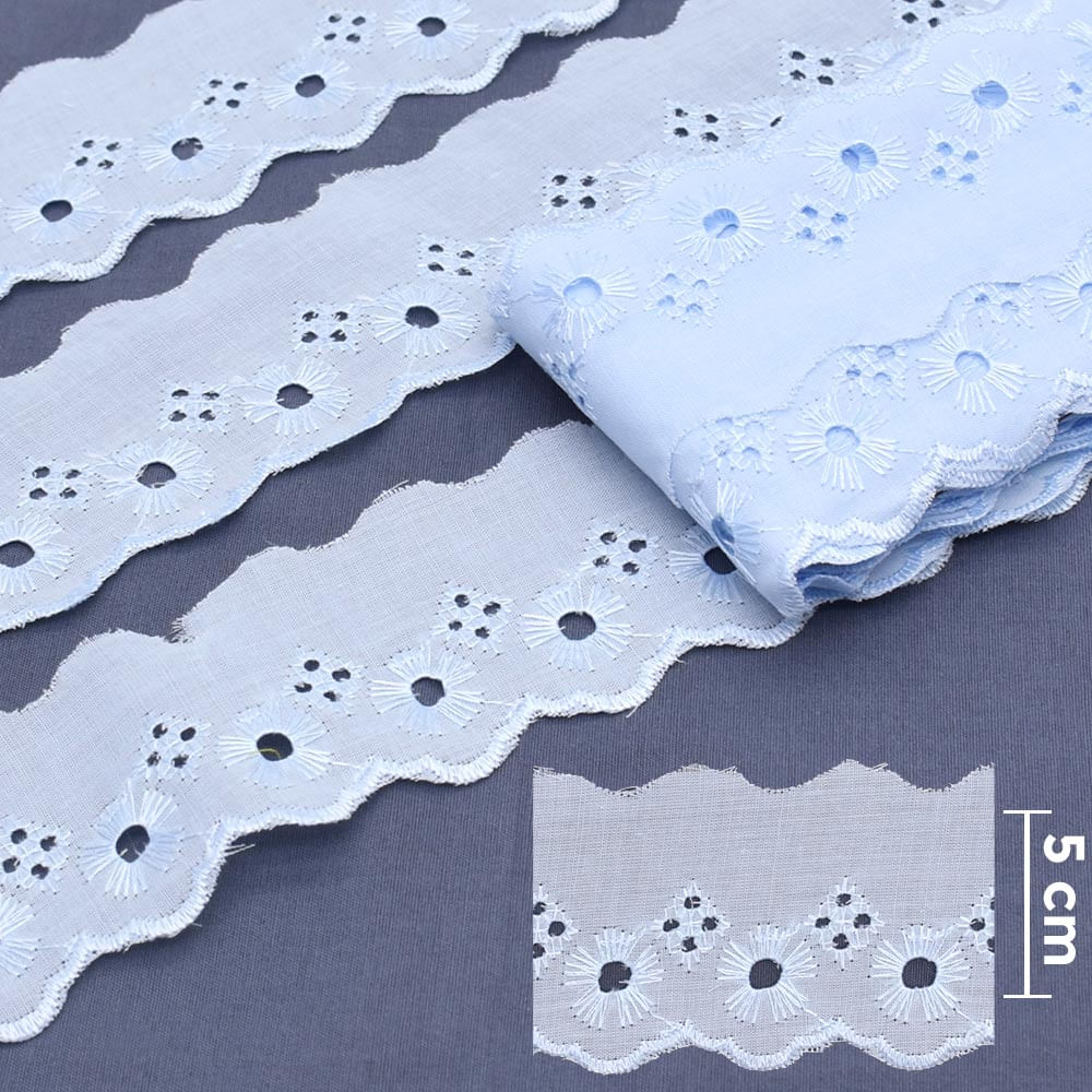 Bordado Inglês 5,0cm BP065 Azul - 13,7 Metros | artePunto