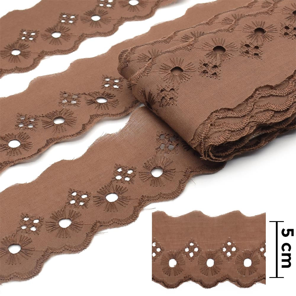 Bordado Inglês 5,0cm BP065 Marrom - 13,7 Metros | artePunto