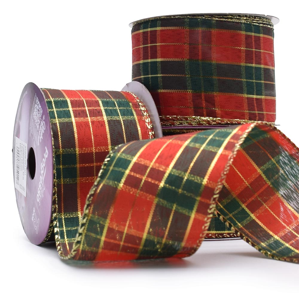 Com estampa xadrez em tons tradicionais e acabamento com ourela dourada, esta fita aramada de 63mm é uma escolha charmosa para composições que combinam o rústico com o sofisticado. O padrão clássico do xadrez ganha destaque com o brilho sutil das bordas metálicas, criando um visual equilibrado e elegante.