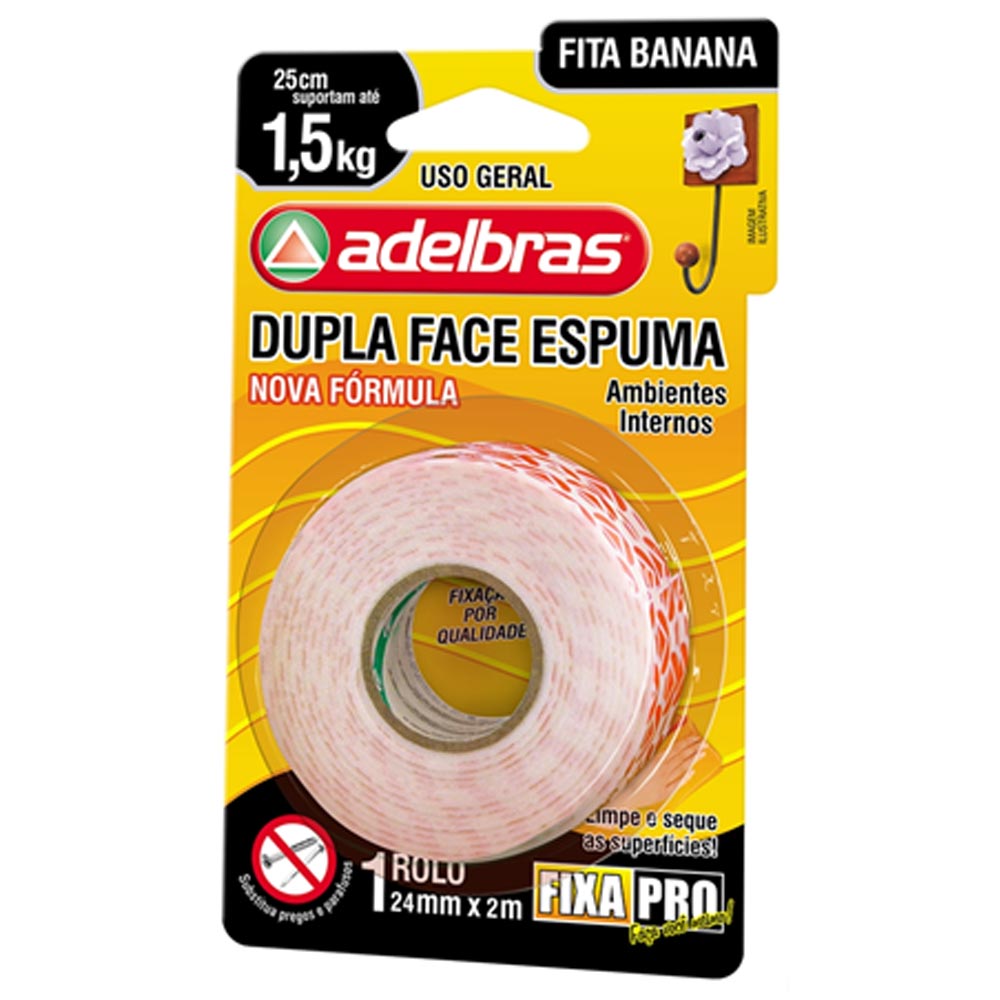 Fita Banana Dupla Face Espuma Fixa Pro Adelbras - 24mm x 2m