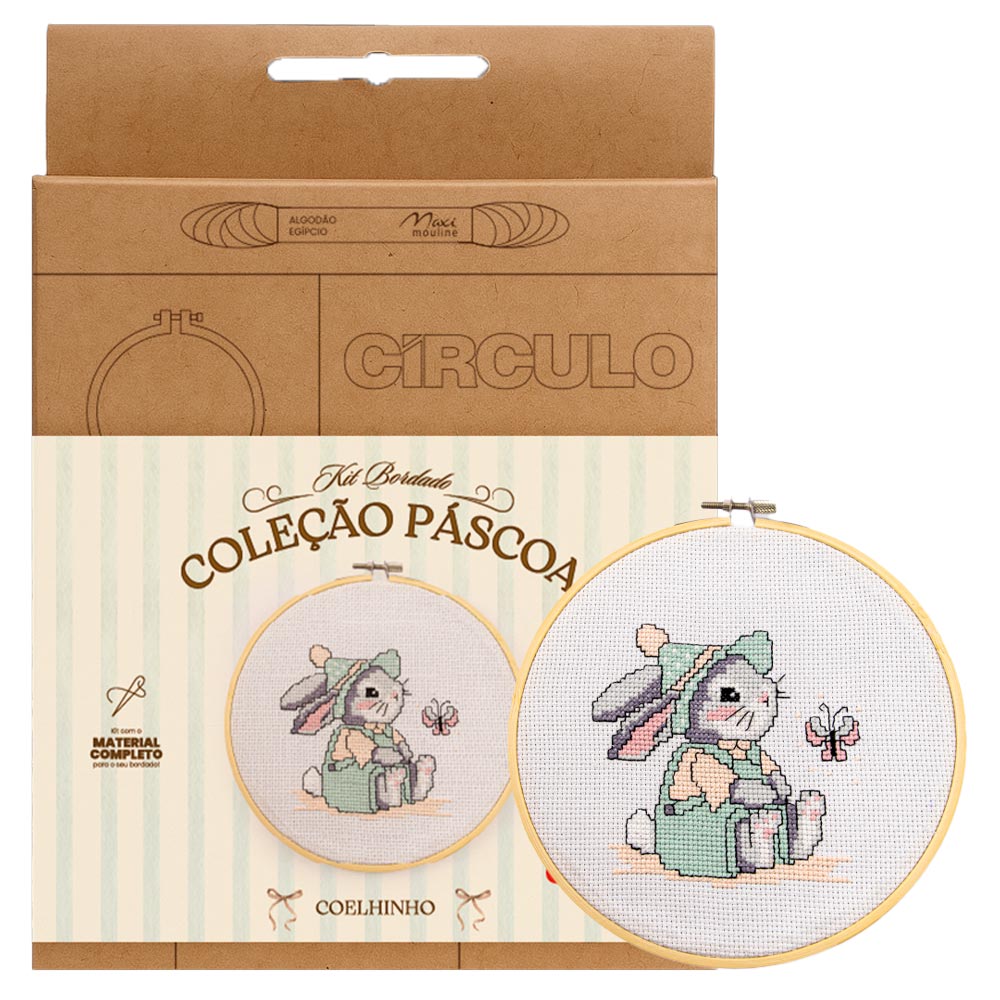 Todo o material necessário já está incluso, desde os fios até o bastidor, permitindo que você comece o projeto assim que abrir a embalagem. A combinação das cores, o estilo clássico e o tema pascal fazem desse bordado um item especial para compor a decoração da época mais doce e afetiva do ano. O resultado é uma peça delicada e cheia de personalidade.