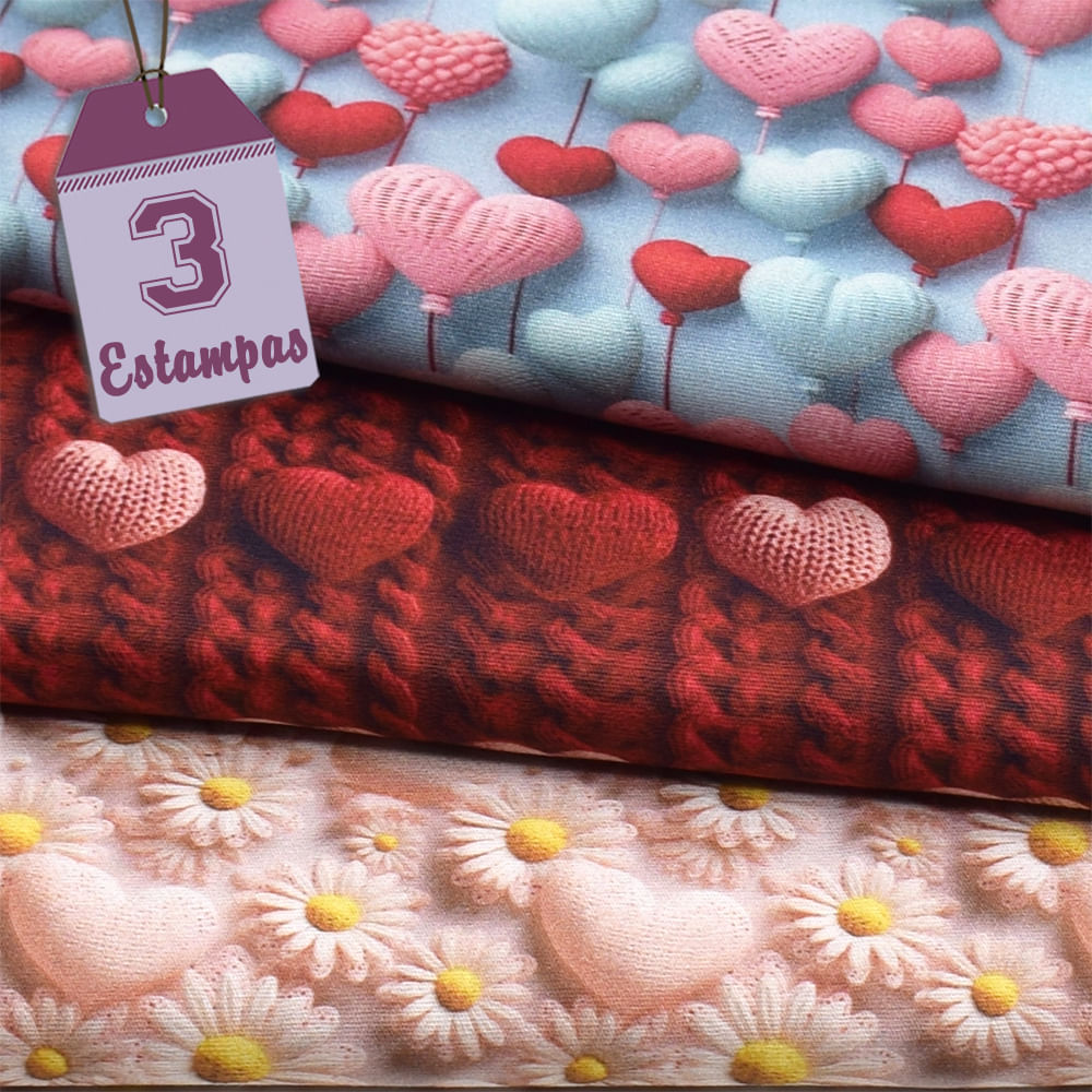 Kit de Tecido Coração com Crochê (50x150) 3 Estampas