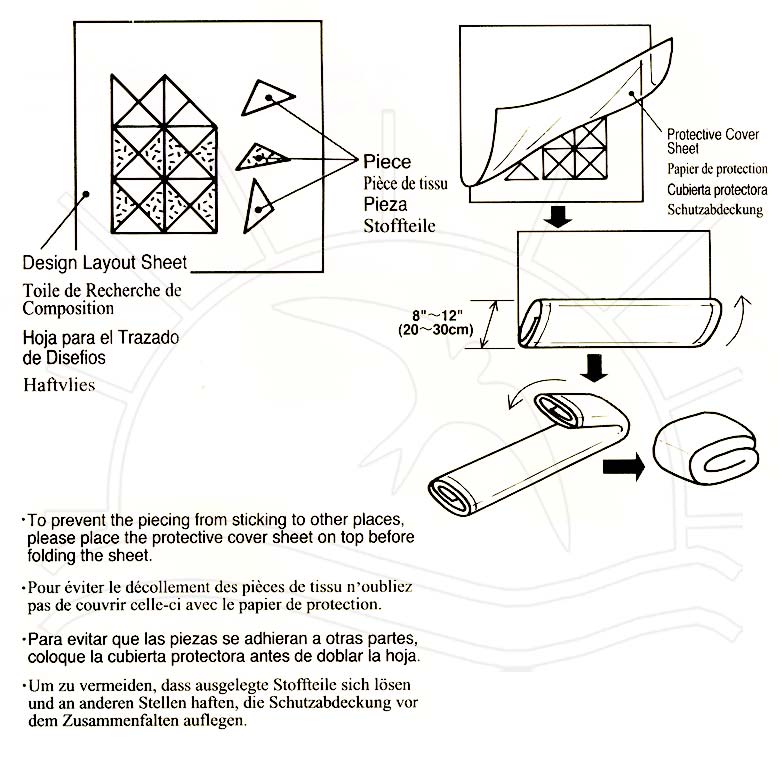 Coloque seu trabalho sobre a folha para visualizar o desenho e a disposição das cores antes de costurar. Não necessita de uso de cola ou alfinetes, permitindo que a peça seja fixada e depois retirada do tecido.