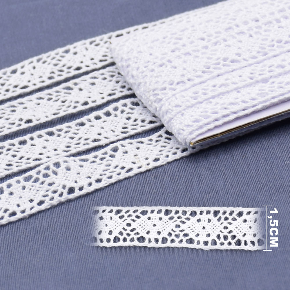 Renda de Algodão ArtePunto RA003 Branca 1,5cm - 10 Metros