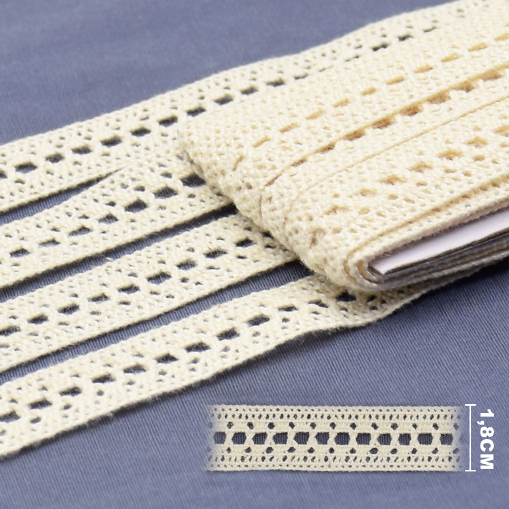 Renda de Algodão ArtePunto RA005 Cru 1,8cm - 10 Metros