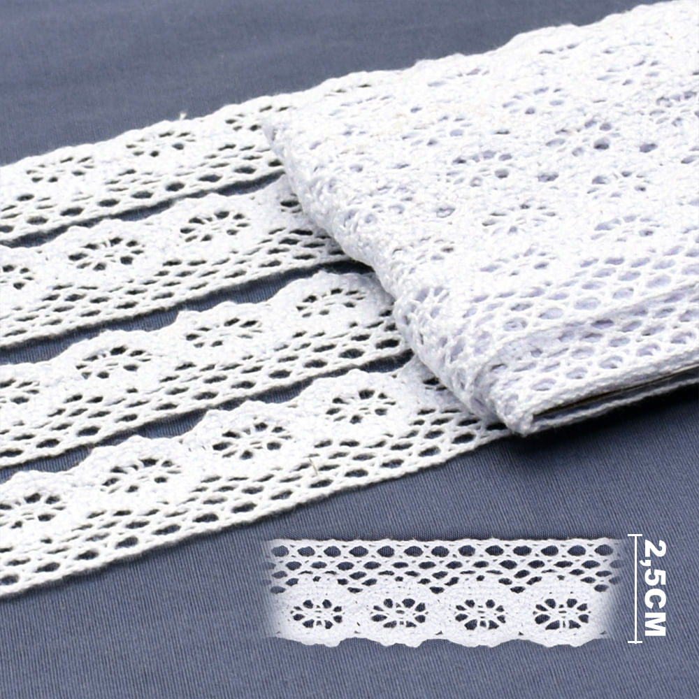 Renda de Algodão ArtePunto RA034 Branca 2,5cm - 10 Metros